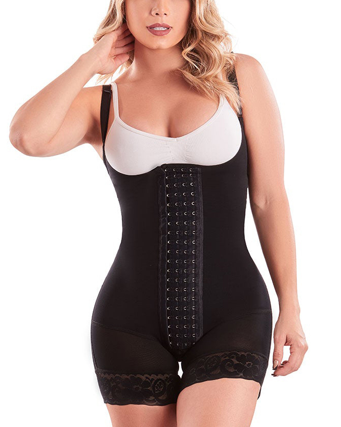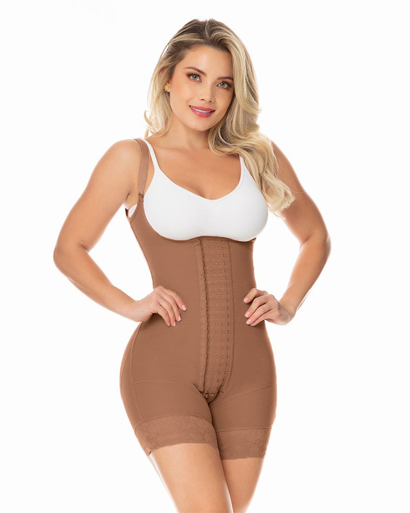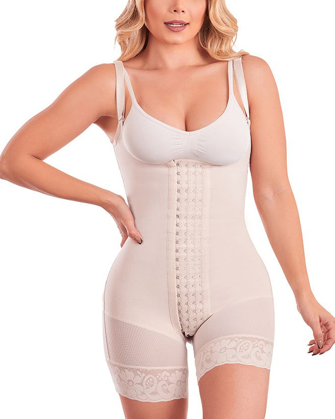 Fajas Colombianas Body Shaper Girdle With 4 Line Hooks Closure, Semi Covered Back, Middle Leg, Butt Lifting Effect